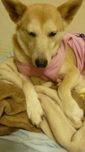 ワンの梅子は、起きていま……せんでした(´∀`*)ウフフ