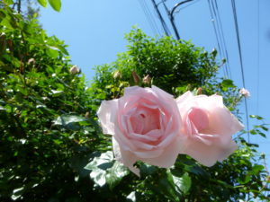 ピンクのバラと元気な梅ちゃん(^^)/